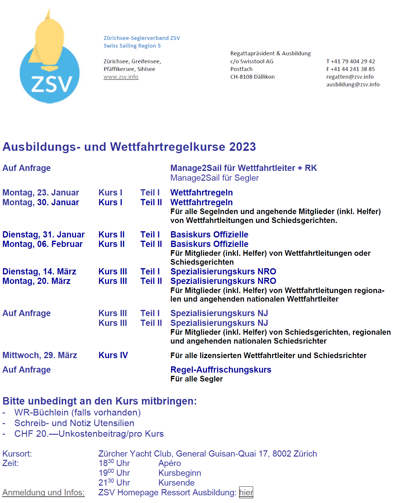 ZSV Kurse Wettfahrten 2023